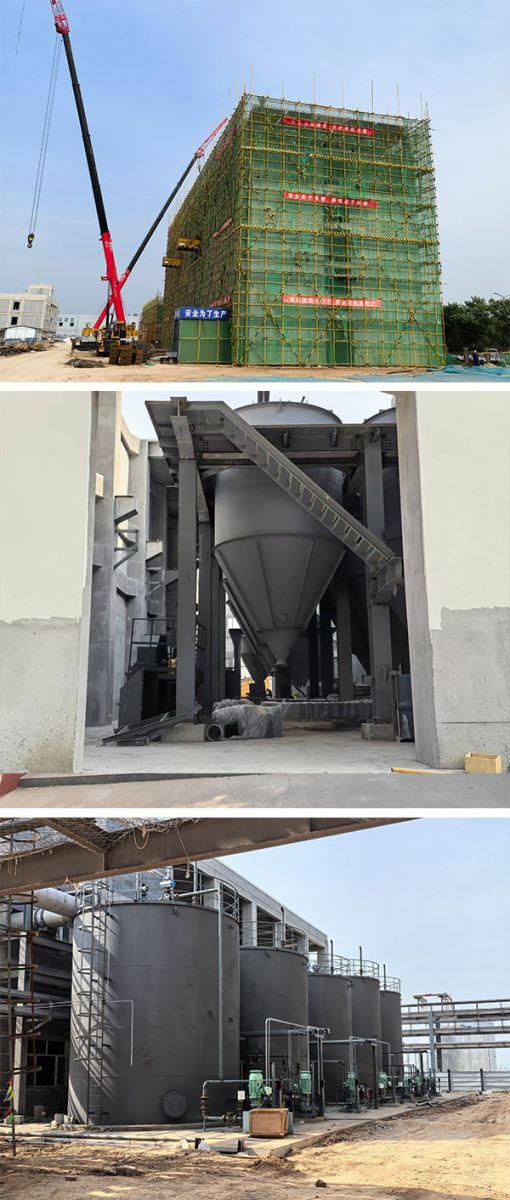一、 硫化黑裝置總體安裝情況: 1、設(shè)備安裝情況 主體設(shè)備已安裝完成。 2、管道安裝情況 工藝管道:硫化前部、硫化、水解、尾氣已安裝完成90%。 儀表管道:硫化前部、硫化完成80%、水解安裝完成95%。 3、電氣、儀表安裝情況 硫化黑裝置配電室安裝完成80%,水解動力、儀表電纜敷設(shè)完成,接線完成90%,硫化動力、儀表電纜敷設(shè)完成,接線完成95%,硫化前部儀表、動力電纜正在敷設(shè)完成90%,接線完成30%。 二、噴霧干燥裝置 1、設(shè)備安裝情況 設(shè)備安裝完成,設(shè)備保溫已施工完成。 2、管道安裝情況 管道安裝完成95%,管道保溫已施工完成。 3、電氣、儀表安裝情況 電氣、儀表已全部安裝完成。 三、尾氣處理裝置 施工情況: 1、 設(shè)備安裝:裝置內(nèi)主要設(shè)備已安裝完成80%; 2、 工藝管道安裝:工藝管道預(yù)制焊接安裝完成60%; 3、 儀表管道:現(xiàn)場正在預(yù)制; 4、 電氣安裝:現(xiàn)場正在整理設(shè)備就地操作柜準(zhǔn)備開始安裝; 5、 儀表安裝:未開始安裝; 四、非標(biāo)儲罐 1、現(xiàn)場非標(biāo)儲罐共計24臺,現(xiàn)場已制作焊接完成。 2、非標(biāo)儲罐防腐噴漆完成80%。 五、滾筒干燥混合機(jī)安裝 1、設(shè)備:主要設(shè)備已安裝就位完成。 2、 電氣:低壓配電柜已安裝就位完成,電纜橋架安裝完成,電纜鋪設(shè)完成,接線完成70%。